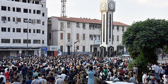 واستنكر المحتشدون في وقفة وطنية عنوانها “جسد واحد في وجه العدوان”، غارات الاحتلال الإسرائيلي التي استهدفت دمشق وريفها والسويداء ودرعا، مؤكدين وقوفهم جنباً إلى جنب مع قوات الجيش والأمن في سبيل الحفاظ على وحدة سوريا أرضاً وشعباً، ودعمهم جهود الدولة السورية لتحقيق ذلك.