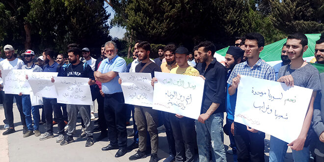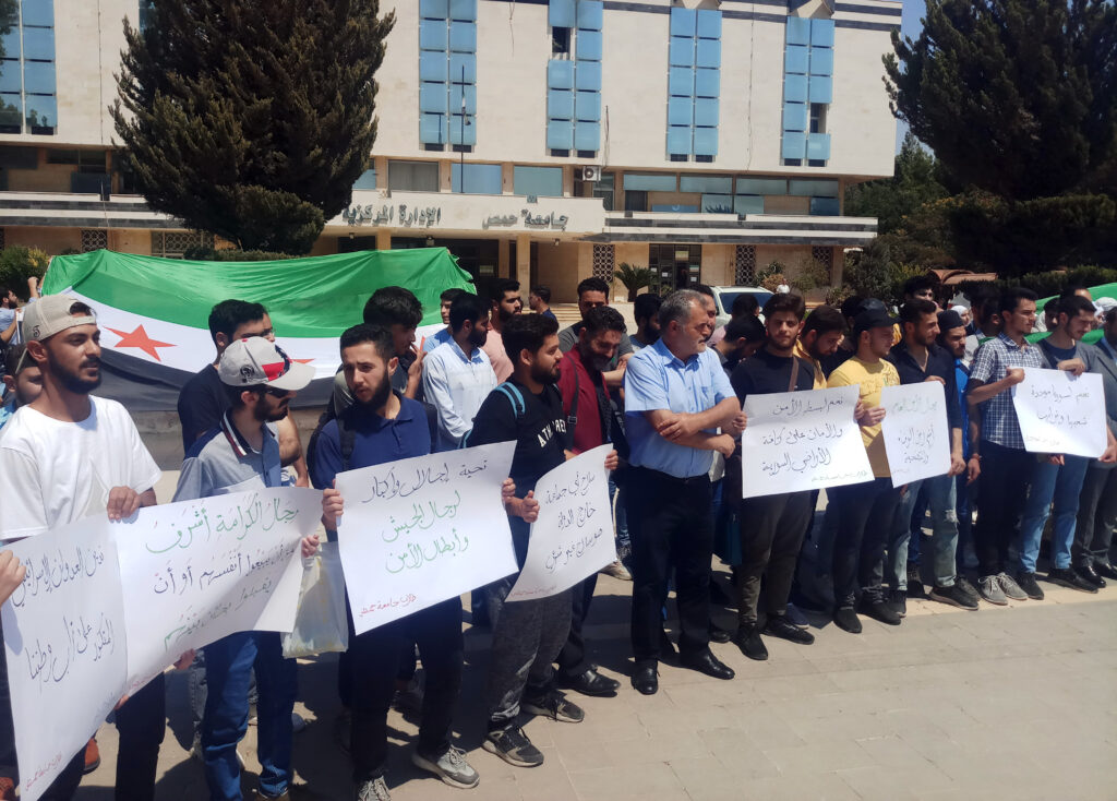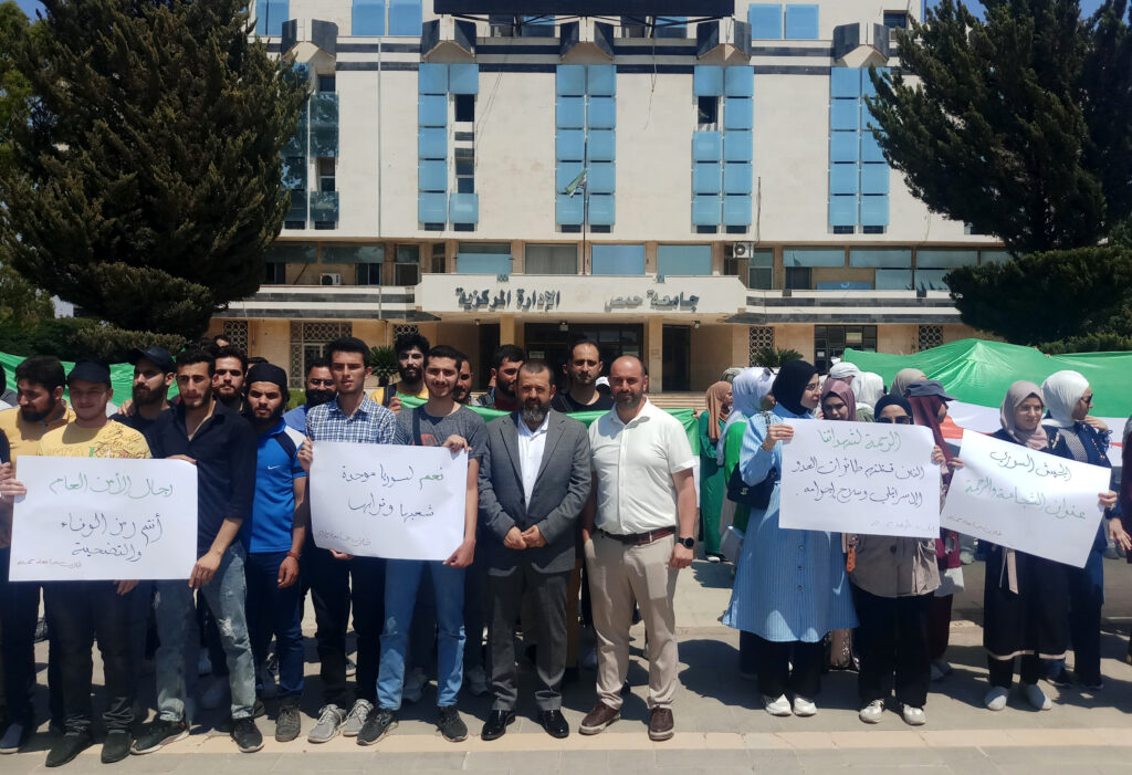 نظم طلبة جامعة حمص اليوم وقفة احتجاجية، تنديداً بالاعتداءات الإسرائيلية المتكررة على سوريا، ودعماً للجيش العربي السوري وقوى الأمن الداخلي.