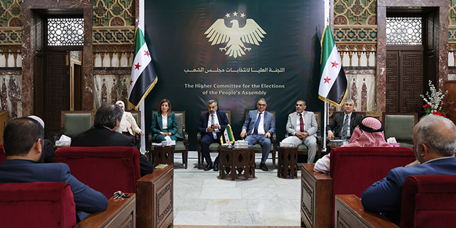 ويأتي هذا اللقاء في إطار سلسلة اللقاءات التشاورية التي تجريها اللجنة العليا لانتخابات مجلس الشعب مع مختلف فئات المجتمع السوري، لصياغة نظام انتخابي.
