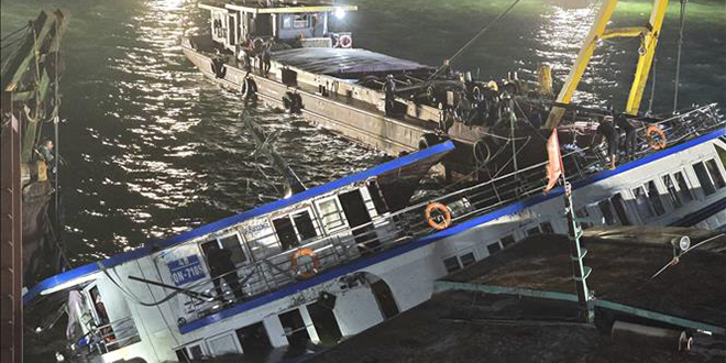 وكان الحادث وقع أمس أثناء قيام السفينة بجولة سياحية على متنها عشرات السياح، إضافة إلى خمسة من أفراد الطاقم.