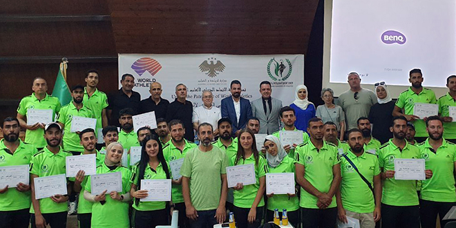 اختتمت اليوم دورة تأهيل مدربي الدرجة الثالثة لألعاب القوى “مستجد” التي أقامها اتحاد ألعاب القوى في مبنى وزارة الرياضة والشباب.