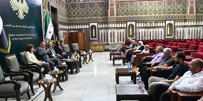 ناقشت اللجنة العليا لانتخابات مجلس الشعب اليوم مع وفد من وجهاء وفعاليات منطقة تلبيسة بريف حمص الشمالي، آليات العملية الانتخابية، والتنسيق المشترك لضمان تمثيل فعّال للمنطقة في المجلس القادم، وذلك في إطار اللقاءات التي تُجريها اللجنة مع مختلف الفعاليات الشعبية والمجتمعية.