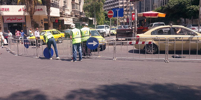 نفذت مديرية هندسة المرور في محافظة دمشق حلاً مرورياً تجريبياً في ساحة المرجة يهدف إلى تسهيل حركة المشاة، وتحسين انسيابية الحركة المرورية.