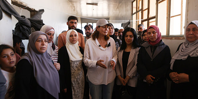 جولة تفقدية لوزيرة الشؤون الاجتماعية والعمل على أحد مراكز الإيواء المؤقت في درعا