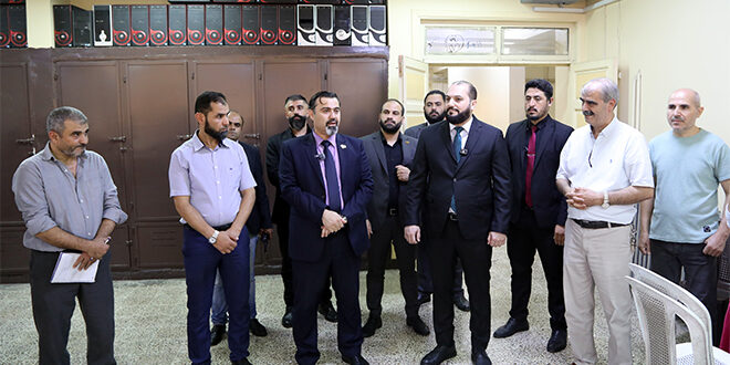 تفقد وزير التربية والتعليم السوري الدكتور محمد عبد الرحمن تركو ومحافظ دمشق ماهر مروان إدلبي اليوم، سير أعمال التنتيج لأوراق امتحانات التعليم الأساسي والثانوية المهنية، وذلك في دائرة الامتحانات بدمشق.