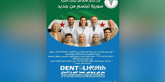 تحت شعار “سوريا تبتسم من جديد” تنطلق غداً فعاليات المعرض والمؤتمر الدولي لصحة الفم والأسنان برعاية وزارة الصحة، وبالتعاون مع نقابة أطباء الأسنان في سوريا ويستمر لغاية الـ 27 من الشهر الجاري على أرض مدينة المعارض الدولية بدمشق.