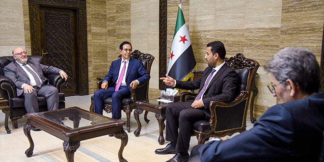 بحث وزير الصحة السوري الدكتور مصعب العلي مع رئيس مجلس الأعمال السعودي البريطاني ورئيس مجلس إدارة شركة إنتر هيلث العالمية عماد دغير آلية الاستثمار في القطاع الصحي.