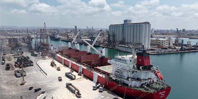 تحميل باخرتي فوسفات في مرفأ طرطوس بكمية 78 ألف طن تمهيداً لتصديرها إلى رومانيا ومصر