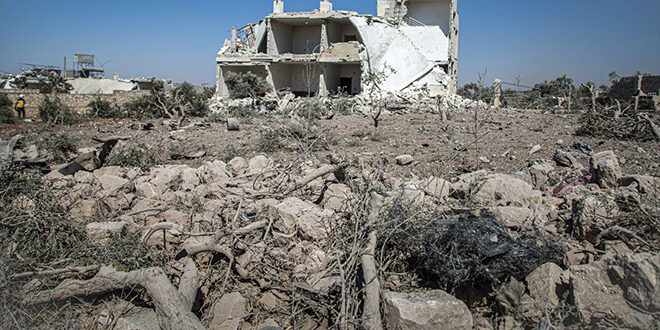 لقطات تظهر حجم الأضرار التي لحقت بمكان الانفجار في بلدة معرة مصرين بريف إدلب الشمالي