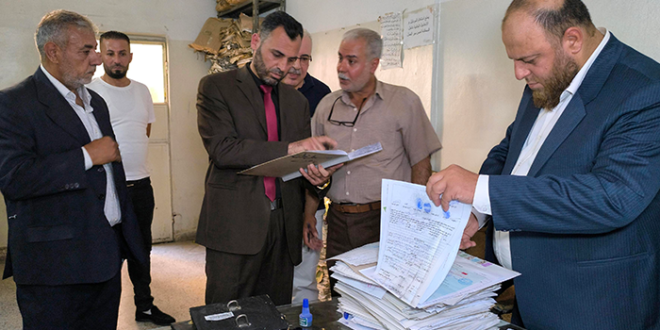 اطلع المحامي العام في حماة “أيمن العثمان” ورئيس عدلية حماة “محمد النعسان” على واقع العمل في محكمة مدينة سلمية والمحكمة الشرعية فيها، كما زارا السجن.