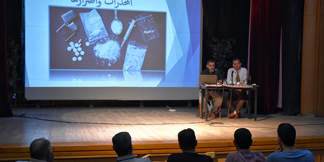 من جانبه، استعرض الدكتور الصيدلي محمد عمر المحاضر في كلية الصيدلة بجامعة إدلب، أنواع المخدرات الطبيعية والصناعية والمختلطة، ومراحل التعاطي الخطير وصولاً إلى الإدمان، مع شرح الفروقات الجسدية والعقلية بينها.