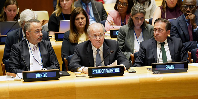 ونقلت وكالة وفا عن مصطفى قوله في كلمة خلال مؤتمر الأمم المتحدة رفيع المستوى حول التسوية السلمية لقضية فلسطين وحل الدولتين في نيويورك: “من حق الشعب الفلسطيني أن يعيش بحرية وكرامة في وطنه، كما يستحق كل شعب في العالم أن يعيش في سلام وأمن ولكن لا يمكن تحقيق كل ذلك إلاّ من خلال تحقيق حقوق الشعب الفلسطيني غير القابلة للتصرف، وعلى رأسها حقه في تقرير المصير والعودة وتجسيد دولة فلسطين المستقلة وذات السيادة على حدود عام 1967، وعاصمتها القدس الشرقية”.