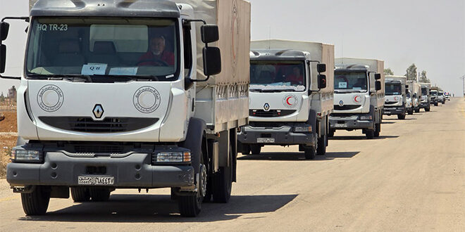 دخول قافلة المساعدات الرابعة إلى مدينة السويداء عبر معبر بصرى الشام الإنساني