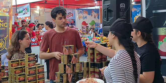 وتنوعت المعروضات بين صناعات غذائية وألبسة ومنظفات وإكسسوارات ومفروشات وتحف وغيرها إضافة لوجود أنشطة ترفيهية ومسابقات وهدايا للزوار.