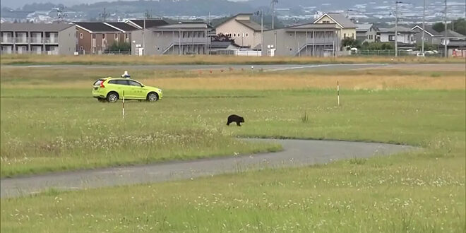 ونشرت سكاي نيوز فيديو ظهر فيه الدب وهو يتجول بحرية على مدرج مطار ياماغاتا في شمال اليابان، ما استدعى إغلاق المدرج فوراً، كما تسببت هذه المشاهدة الأولى في تأخير أربع رحلاتٍ جويةٍ لمدة ناهزت الساعة، لكن المفاجأة كانت أكبر عندما ظهر الحيوان مجدداً عند الظهيرة تقريباً “راكضاً” على المدرج، ما دفع موظفي المطار إلى محاولة إبعاده بسيارة، ومع استمرار تجول الدب في المطار، أُغلق المدرج مجدداً.
