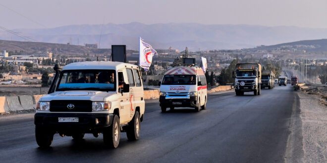 أفاد مراسل وكالة سانا بأن قافلة مساعدات إنسانية جديدة انطلقت اليوم من العاصمة دمشق باتجاه محافظة السويداء من جهة بصرى الشام بريف درعا، وذلك بمبادرة من الهلال الأحمر العربي السوري وبالتعاون مع عدد من المنظمات الأممية.