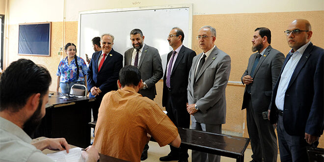 تفقد وزير التعليم العالي والبحث العلمي الدكتور مروان الحلبي، سير الامتحان الوطني لطلاب الطب البشري بجامعة دمشق اليوم، وذلك خلال جولة رافقه فيها رئيس جامعة دمشق الدكتور مصطفى صائم الدهر، ورئيس الهيئة الوطنية للجودة والاعتمادية الدكتور عمر حمادة.