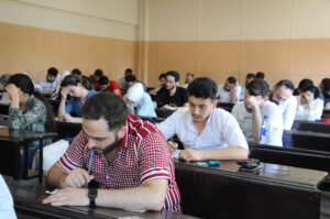 وأوضح حمادة أنّ الامتحانات الخارجية تجرى بالتعاون مع الجامعة الافتراضية السورية وتخضع لنظام المراقبة بالكاميرات، وبوجود مراقبين لضمان سير العملية الامتحانية بكفاءة وشفافية، مضيفاً: إن الفحص يجري على قسمين يفصل بينهما 15 يوماً، القسم الأول يتناول محاور الأمراض الباطنة، الجلدية، وطب الأطفال، في حين يضم القسم الثاني محاور الجراحة، والنسائية، والأذنية، والعينية.