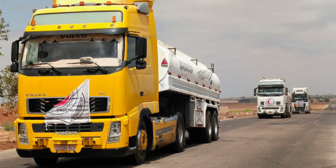 وذكرت مراسلة سانا في درعا، أن هذه القافلة وصلت بإشراف الهلال الأحمر العربي السوري، ويتم حالياً العمل على استكمال تجهيزها للدخول إلى محافظة السويداء، بالتنسيق مع المعنيين، بهدف تأمين كميات من المحروقات للمرافق الخدمية والإنسانية في المحافظة.