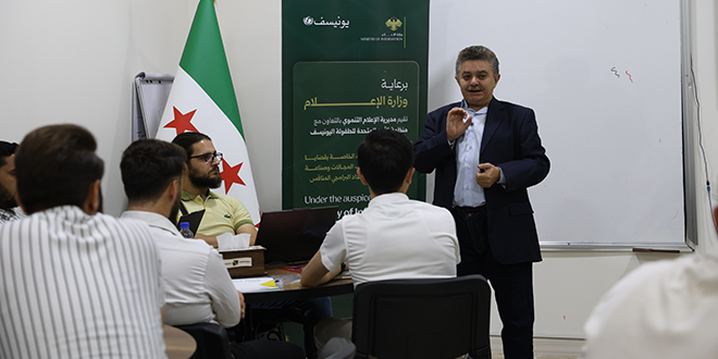 أقامت مديرية الإعلام التنموي في وزارة الإعلام بالتعاون مع منظمة الأمم المتحدة للطفولة “اليونيسيف” ورشة عمل إعلامية حول بناء الرسائل الإعلامية الخاصة بقضايا الطفولة وصناعة المحتوى المنافس، بمشاركة عدد من الإعلاميين والصحفيين في محافظة إدلب.