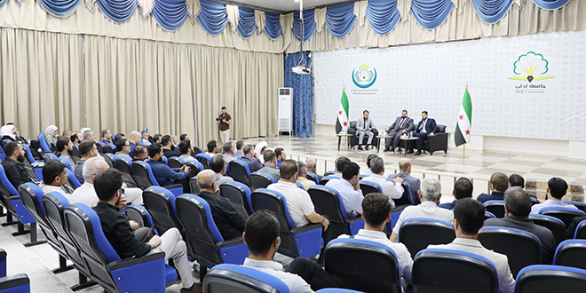 وتحدّث الدكتور البكور خلال الندوة التي حضرها محافظ إدلب محمد عبد الرحمن، ومدير مديرية الشؤون السياسية محمد الخلف عن الخطوات التي تتخذها الدولة فيما يخص السويداء، مشيراً إلى الجهود المبذولة لإعادة الاستقرار وتعزيز الوحدة الوطنية، كما تطرق إلى سبل بناء علاقة متينة وصحيحة بين مختلف أطياف الشعب السوري.