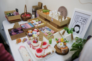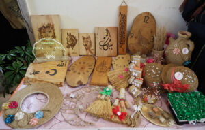 ويتضمن المعرض الذي يستمر يومين، وتشارك فيه 30 سيدة منتجة مواد غذائية بشقيها النباتي والحيواني، وإكسسوارات، وقطعاً مصنوعة من الكونكريت ونعومة الشموع المعطرة والمصممة والمصقولة بكل الأشكال، ومستلزمات نسائية مصنوعة من الكريستال والخرز والجبسين، إضافة إلى زهور مصنوعة من مواد مقاومة للتلف وصديقة للبيئة، ورسومات عدة على الخشب، ومواد للعناية بالبشرة بالأعشاب الطبية.