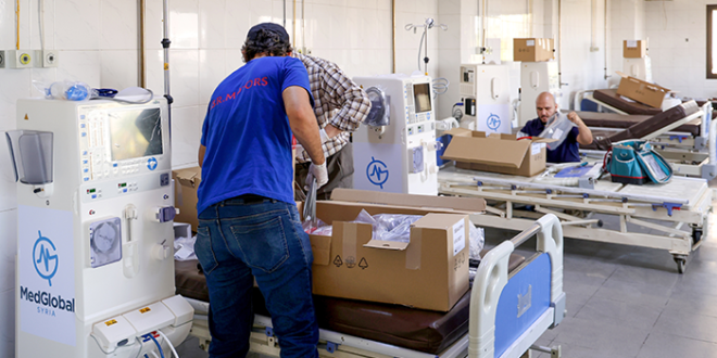 مستشفى الكلية الجراحي في دمشق يتسلّم 15 جهاز غسيل كلية متطورا من منظمة ميد غلوبال
