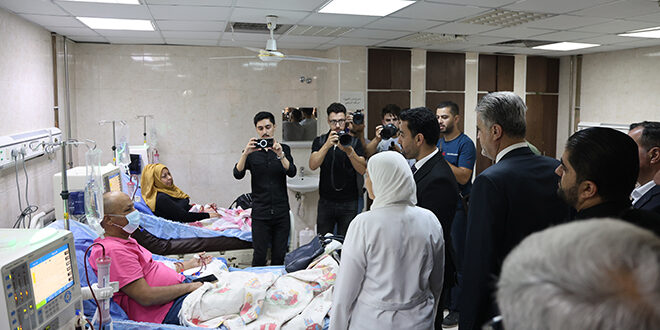 تفقد وزير الصحة السوري الدكتور مصعب العلي أجهزة غسيل الكلى التي سلمت أمس لمشفى الكلية الجراحي بدمشق “ابن النفيس” والمقدَّمة ضمن مبادرة لمنظمة “ميدغلوبال” الإنسانية الطبية وعدد من الأطباء ورجال الأعمال السوريين المغتربين، وذلك بهدف دعم مرضى القصور الكلوي في سوريا.
