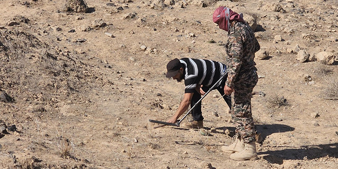 تواصل الفرقة 66 في الجيش العربي السوري أعمال إزالة الألغام والمخلفات الحربية من حيي الصناعة والمطار القديم في دير الزور، والتي تشكل تهديداً لحياة الأهالي العائدين إلى منازلهم.
