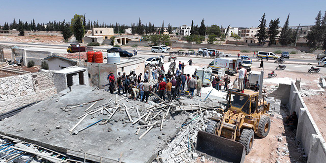 وباشرت فرق الدفاع المدني السوري والأجهزة المختصة عمليات رفع الركام باستخدام المعدات الثقيلة، وسط استنفار ميداني في المنطقة، حيث تم إنقاذ أربعة مصابين وإحالتهم إلى المراكز الطبية القريبة لتلقي العلاج، فيما تم انتشال اثنين آخرين من تحت الأنقاض، ولا تزال فرق الإنقاذ تعمل للوصول إلى اثنين من العمال العالقين.