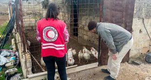 السويداء-سانا وزع فرع الهلال الأحمر العربي السوري بالسويداء منحتي دواجن في 6 قرى بريف المحافظة، …