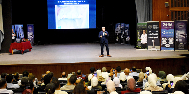 نظّم فرع نقابة أطباء الأسنان في حمص بالتعاون مع شركة زهرا الطبية فعالية علمية بعنوان “زراعة الأسنان والمداواة اللبية” تضمنت محاضرات ومعرضاً، وذلك في قصر الثقافة بالمدينة.