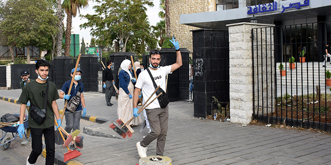 في إطار مبادرة وزارة الثقافة “سوريا بيتنا الكبير”، أطلقت مديرية ثقافة حمص بالتعاون مع مجلس المدينة نشاطاً بيئياً تطوعياً شاركت فيه العديد من الفرق، وشمل تنظيف محيط قصر الثقافة وشارعي العراب والغوطة.