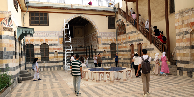 توجه المشاركون بعد ذلك إلى فندق تاليسمان، وهو أحد أجمل البيوت الدمشقية التي تحولت إلى فندق، للتعرف على تفاصيل العمارة التقليدية وما تحمله من إرث حضاري عريق، فحسب القائمين عليه تحول هذا المكان لأهم وجهة للسياح القادمين لدمشق، وخاصةً أنه الفندق الأثري الوحيد ضمن المدينة الذي يحوي مسبحاً، ويعود عمره إلى 150 سنة، أُعيد ترميميه وتأهيله كفندق عام 2006، وهو ذو طابع تراثي تم فيه مزج الألوان بطلة بهية.