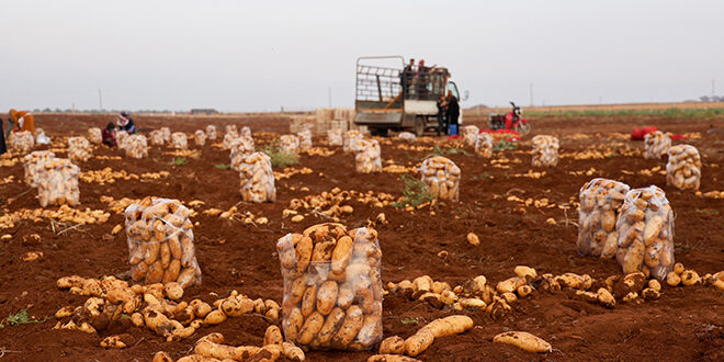 وخلال جولة كاميرا سانا على أحد حقول البطاطا في درعا، أشار المزارع نعمان خليل، إلى أن إنتاج البطاطا هذا العام جيد ولكنه لم يصل إلى درجة الممتاز، لأسباب تتعلق بالعوامل الجوية وغلاء مستلزمات الإنتاج.