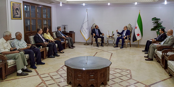 من جانبه استعرض الوفد الصعوبات والتحديات التي تواجهها الجامعة من نقص التمويل، والدمار الكامل لمباني فرعها في قرية المديونة بريف محافظة حلب وصعوبة إعادة بنائها، وإمكانية افتتاح كلية التربية في مقر الجامعة بفرعها في القامشلي، وإمكانية تعديل النسبة في استيعاب الطلاب بين الأصل والفرع في الجامعة لافتين إلى أهمية دعم الجامعة التي تذهب إيراداتها لدعم صندوق النقابة.