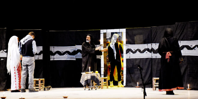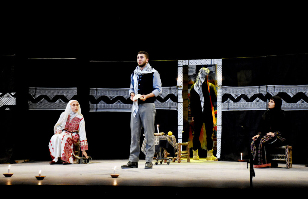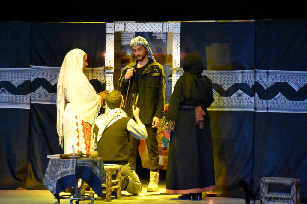 والعرض الذي قدمته فرقة فضاء حمص الثقافي على مسرح قصر الثقافة، مأخوذ من قصص فلسطينية للكاتب “غسان كنفاني”، حيث استمد أحداثه من أربع قصص: “الرجل الذي لم يمت” و”منتصف أيار” و”شيء لا يذهب” و”قصة العروس”، عبر توليفة قصصية ولمسات إخراجية جمعت أبطال القصص ضمن قصة واحدة.