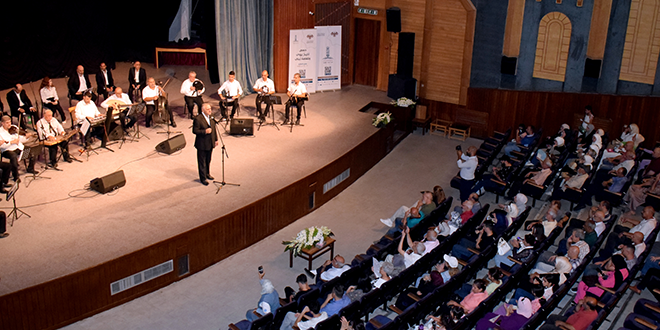 وامتدت الأمسية على مدى ساعة من الزمن، تنقلت خلالها الفرقة بين الموشحات والقدود والأغاني الطربية الأصيلة، بدءاً من نشيد النادي “أهلاً بالناس”، مروراً بوصلة لأم كلثوم، وصولاً إلى الختام بأغنية ثورية حماسية “ارفع راسك فوق”، بمشاركة نخبة من الفنانين، وجيه الحافظ، وموفق الشمالي، وأحمد الجمل، وطلال الفصيح، والوجه الجديد سوسن محمد.