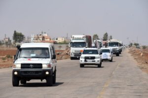 دخلت اليوم إلى محافظة السويداء عبر بصرى الشام القافلة الإنسانية التاسعة والتي تضم 21 شاحنة محملة بمساعدات إغاثية وطبية وغذائية، إضافة إلى محروقات، وذلك في إطار الجهود المستمرة لدعم الأهالي في مواجهة التحديات المعيشية والإنسانية.
