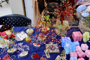 ومن بين المشاركين، برزت الشابة هالة الحسامي بصناعة الشموع المعطرة وفن التطريز، بينما عرضت سماح شاهين مشغولات صوفية وتطريزات دقيقة، أما عبد المنعم نبهان فقد لفت الأنظار بقطع فنية من الشمع الملون، وأتقن بشار علي آغا فن المكرميات، بينما نالت إكسسوارات عبد الله سبيت المصنوعة من الخرز إعجاب الزوار.