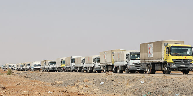 وصلت صباح اليوم قافلة مساعدات إنسانية جديدة إلى ممر بصرى الشام الإنساني في ريف درعا الشرقي، متجهة نحو محافظة السويداء، في إطار خطة الاستجابة الإنسانية التي تنفذها منظمة الهلال الأحمر العربي السوري.