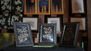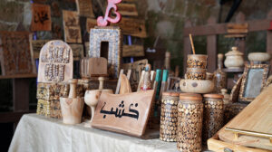 الحرفية انتصار ظروف قدمت أعمالاً فنية في تزيين الخشب بالصدف والبحص والرمل الملوّن، مؤكدة أن مشاركتها ساهمت في تعريف الناس بإبداعها، وفتحت لها باباً للتسويق والتواصل.