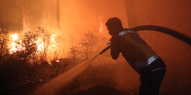 تواصل فرق الدفاع المدني السوري جهودها المكثفة للسيطرة على حرائق متعددة، اندلعت في اللاذقية.