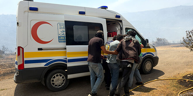 أخلت فرق الدفاع المدني السوري اليوم عدداً من المنازل في بلدة شطحة بمنطقة الغاب بعد وصول الحريق الحراجي إلى المناطق السكنية.