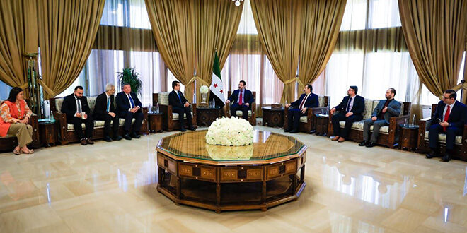 بحث وزير الخارجية والمغتربين السيد أسعد حسن الشيباني مع المدير العام لمنظمة العالم الإسلامي للتربية والعلوم والثقافة (الإيسيسكو ICESCO) سالم بن محمد المالك، سبل التعاون في مجالات البحث العلمي وحماية التراث الثقافي في سوريا، وذلك بحضور وزير التربية والتعليم محمد عبد الرحمن تركو.