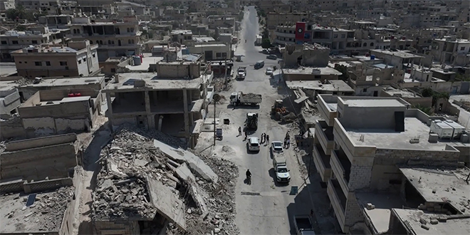 حملة لإزالة الركام والسواتر الترابية في منطقة خان شيخون بريف إدلب