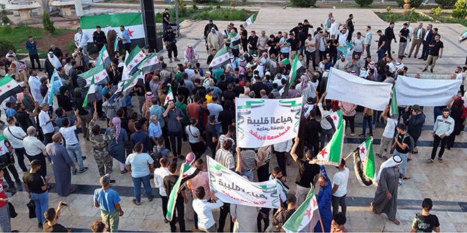 شهدت ساحة سعد الله الجابري في حلب مساء اليوم، وقفة شعبية حاشدة تحت شعار “تلبية نداء الواجب الوطني”، بمشاركة ممثلين عن العشائر والنقابات والفعاليات الشعبية، للتأكيد على رفض مشاريع التقسيم والتمسك بوحدة سوريا.