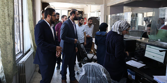 تفقد معاون وزير الداخلية للشؤون المدنية العميد فواز العايش، اليوم، أقسام دائرة الشؤون المدنية في محافظة حلب، للاطلاع على سير العمل الإداري والخدمي فيها.