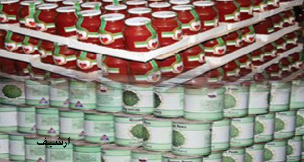 الكونسروة المتنوعة والبازلاء الخضراء و405 أطنان من المربيات المعلبة و 5ر1 طن من المربيات الدوكما.