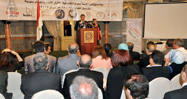 انطلقت اليوم فعاليات مؤتمر الاستثمار والتشاركية الأول لإعادة إعمار سورية الذي تقيمه لجنة سيدات الأعمال الصناعيات في غرفة صناعة دمشق وريفها ومؤسسة بصمة شباب سورية والجمعية السورية للبحوث والدراسات في فندق الشام بدمشق بمشاركة سيدات ورجال أعمال من سورية ودول الاغتراب والدول الصديقة.